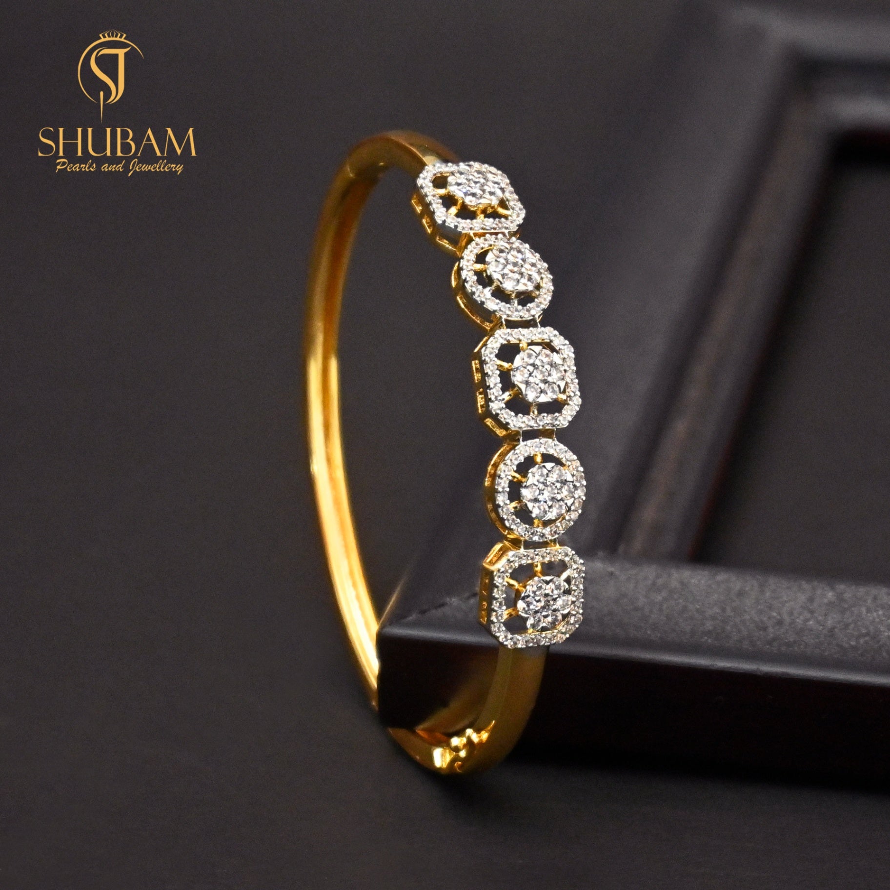 This premium quality bracelet is a must-have accessory with its openable design and diamond-like CZ stones. Available in sizes 2'4 and 2'6, it adds a touch of elegance to any outfit. Upgrade your jewelry collection with this white bangle bracelet, perfect for any occasion.