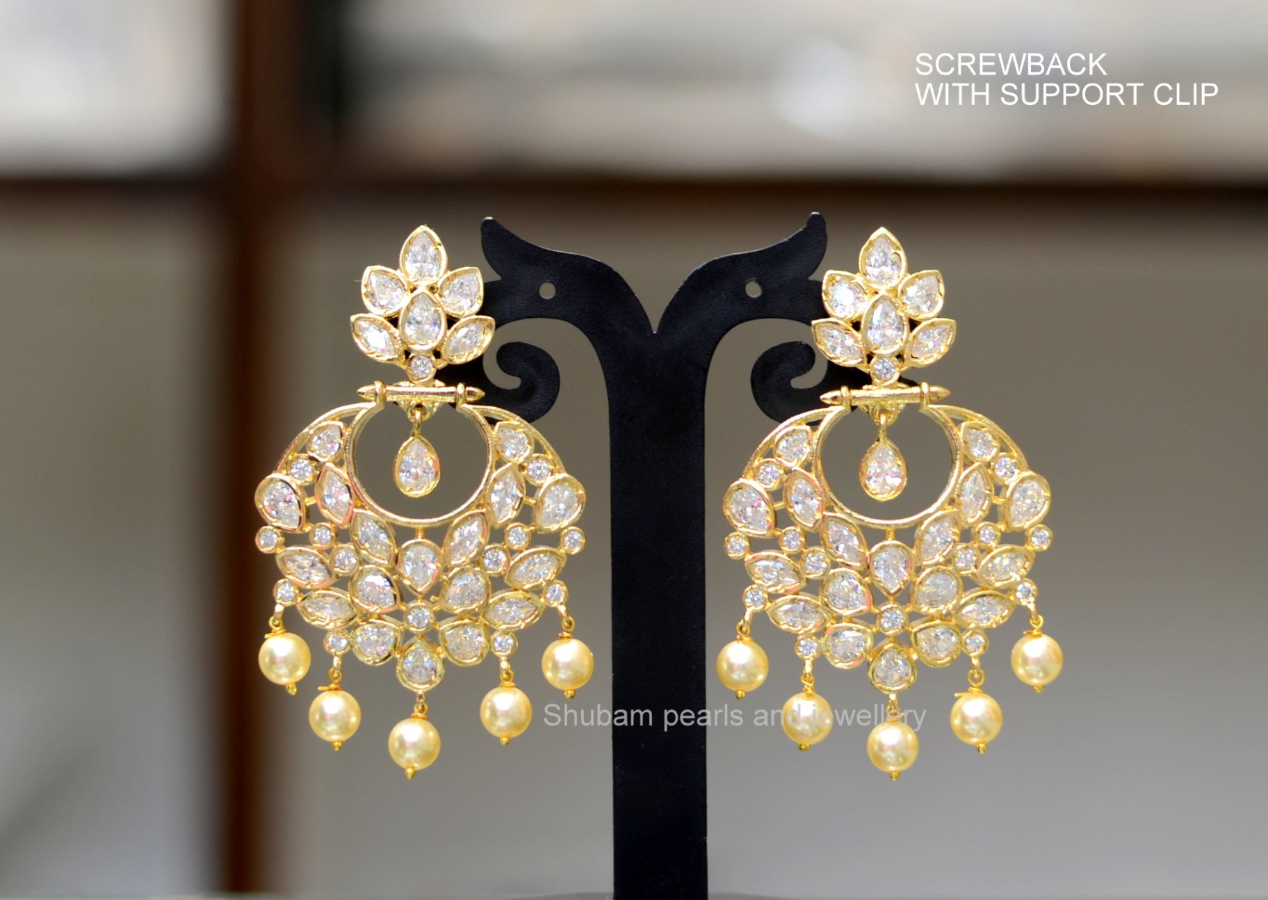 These Earring Earrings boast premium quality and a unique and exclusive design. Adorned with Cz stones and pearls, the golden polish adds a touch of elegance. With screwback closures, these earrings offer both style and security. A hot seller in the market, don't miss out on adding these to your collection.