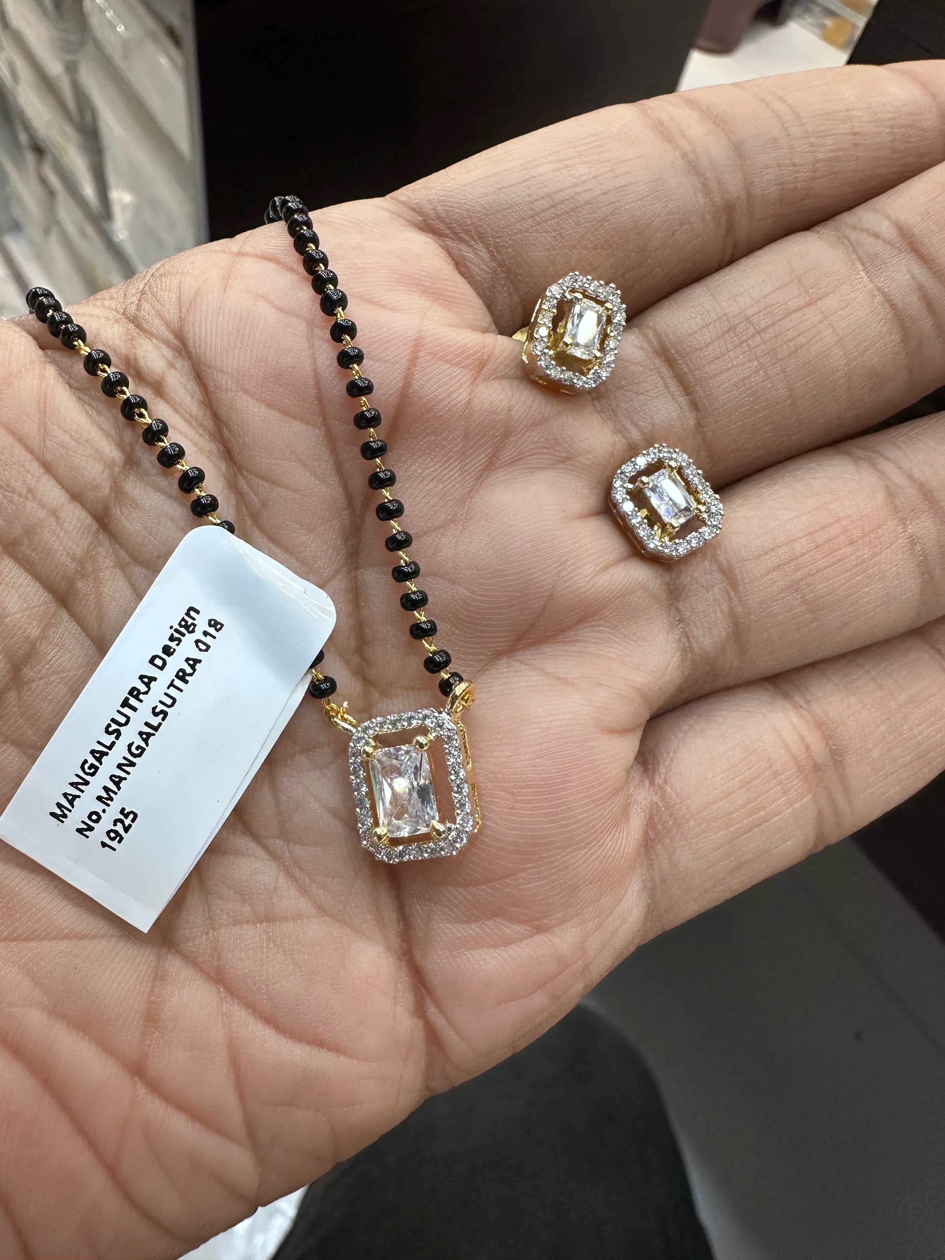 Expertly crafted with premium quality materials, this Mangalsutra (traditional Indian necklace) features a stunning Swarovski crystal and elegant black beads. The octagonal shape adds a unique touch, while the screwback earrings ensure security and comfort. Enhance your style with this single piece that exudes sophistication.unique
