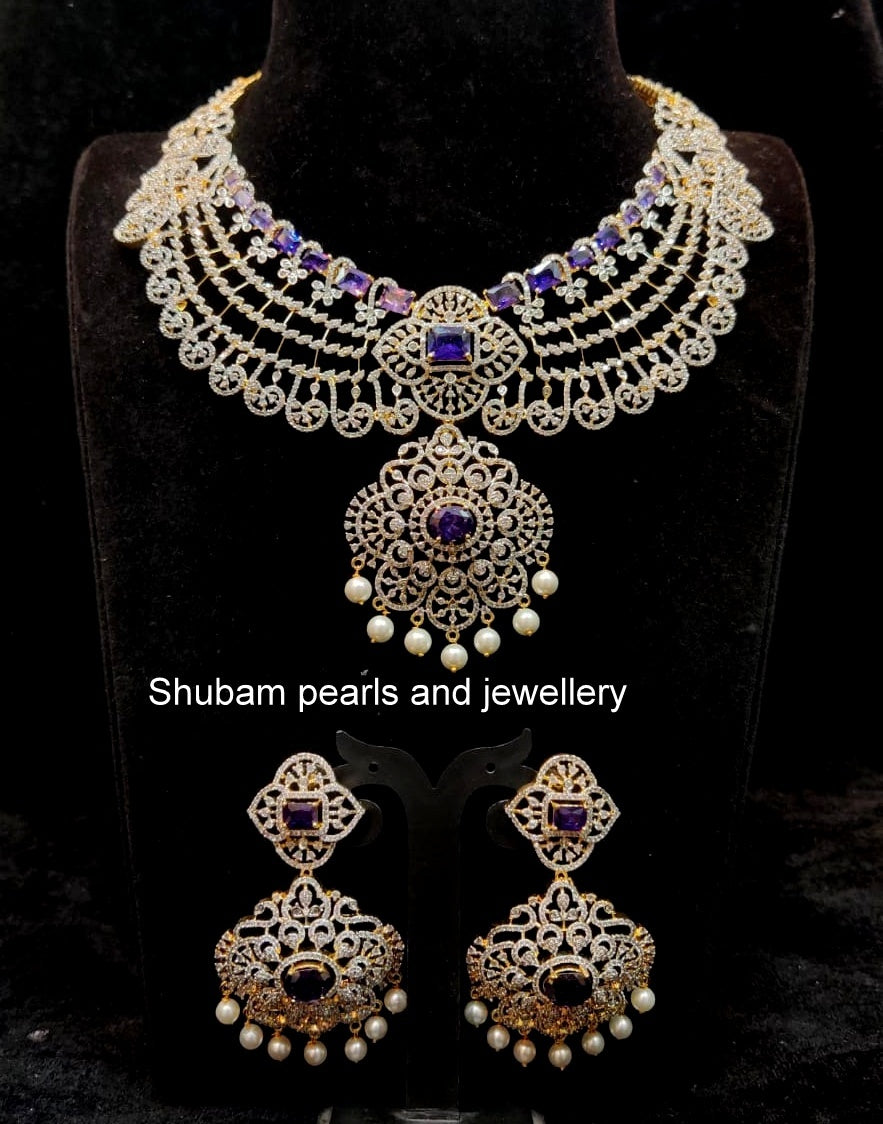 Complete your bridal look with this NECKLACE necklace featuring dazzling diamonds and a stunning Emethyst pendant. The push back earrings and detachable pendant add versatility to this set, making it perfect for any special occasion. Elevate your style and feel like a true bride with this exclusive piece.