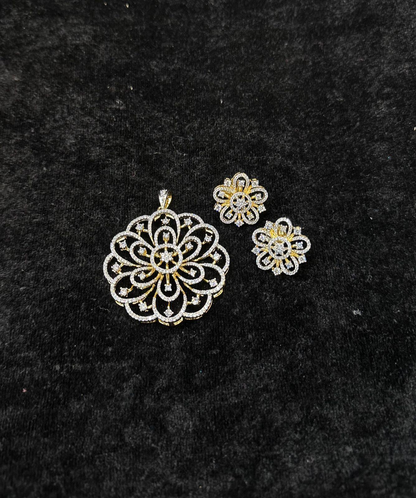 Expertly crafted with premium quality materials, this medium-sized pendant set features stunning Cz stones for a sparkling diamond look. Complete with push back earrings, this set is the perfect addition to any jewelry collection. Elevate your style with the elegant and timeless design of the PENDANT SET CHAINS pendant set 016 DIAMOND WHITE.