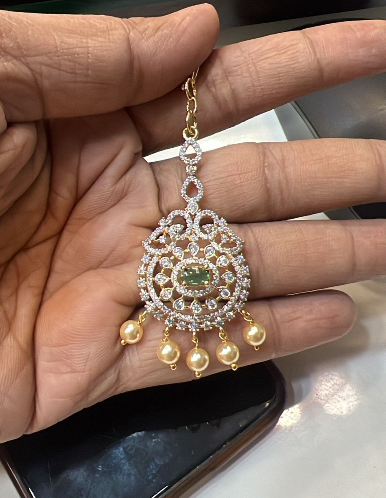 Enhance your look with our elegant and medium-sized TIKKA Tikka 059 EMERALD DIAMOND. Made with Cz stones, its diamond-like appearance adds a touch of sophistication to your style. Perfect for any occasion, this tikka will elevate your outfit effortlessly.